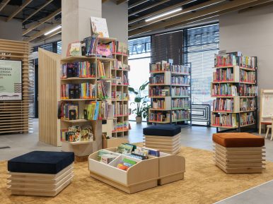 Biblioteka została zaprojektowana jako przestrzeń przestronna, jasna i sprzyjająca rozwojowi. Nowoczesna architektura łączy się tu z funkcjonalnością: miejsca do spokojnej lektury, kąciki zabaw dla najmłodszych, przestrzeń warsztatowa oraz różnorodny księgozbiór, liczący ponad 14 tys. książek, w tym nowości wydawnicze – od literatury pięknej, przez reportaże, aż po bogaty dział dziecięcy. To miejsce otwarte zarówno dla dzieci i młodzieży, jak i dorosłych oraz seniorów.