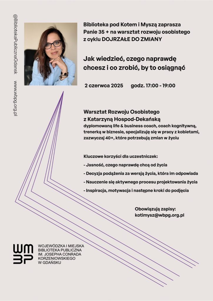 Biblioteka pod Kotem i Myszą zaprasza Panie 35 + na warsztat rozwoju osobistego z cyklu DOJRZAŁE DO ZMIANY