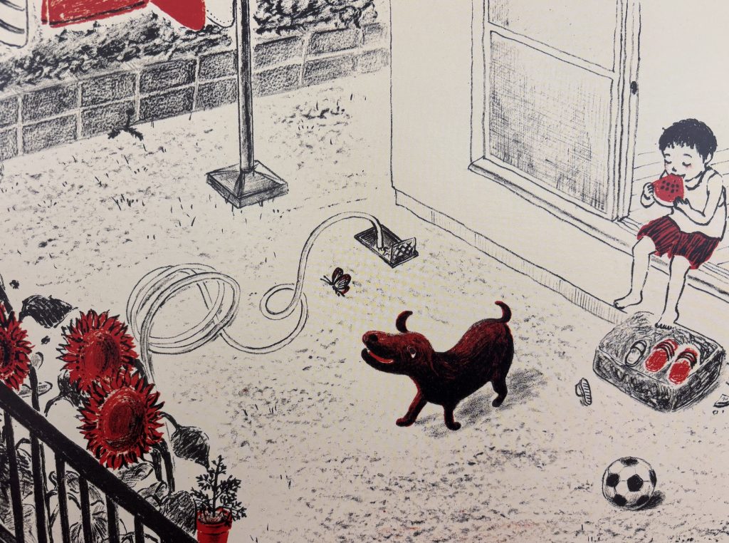 Subtelne ilustracje harmonijnie współgrają z narracją, pobudzając wyobraźnię i zachęcając do aktywnego uczestnictwa w opowieści. Jest to historia psa i małego chłopca Leosia, który – nie bacząc na niebezpieczeństwa – wyrusza samotnie na poszukiwanie swojego czworonożnego przyjaciela.